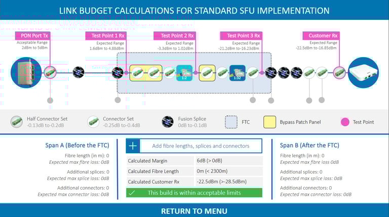 This video and interactive activity were created to help fibre network technicians visualize calculations for link budgets, which is the maximum fibre optic cable length, connectors, and splices they can use before the signal becomes too weak. I consulted with stakeholders, designed and built the activity, and solicited feedback from subject matter experts.